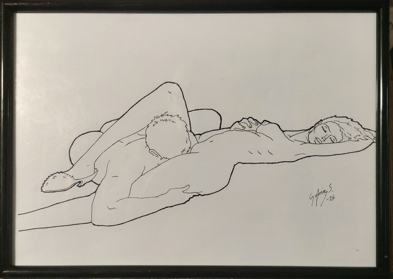 Original illustration/ink drawing for the comic "Sylvia`s secrets" with elegant japaneselike linedrawing. Comes in frames with glass. Size 31x22cm.